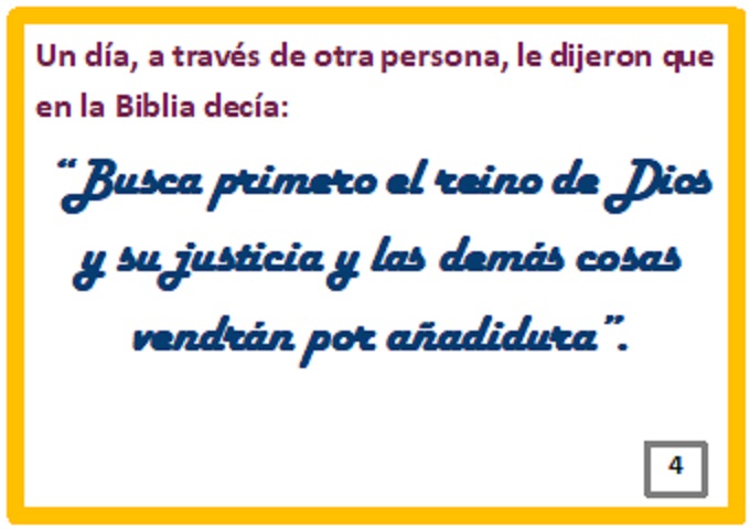 Un día, a través de otra persona, le dijeron que en la Biblia decía: