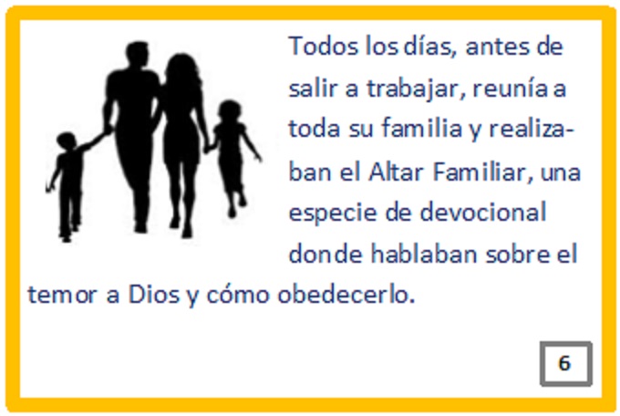 Todos los días, antes de salir a trabajar, reunía a toda su familia y realizaban el Altar Familiar, una especie de devocional donde hablaban sobre el temor a Dios y cómo obedecerlo.