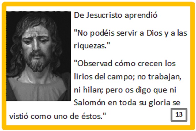 "Observad cómo crecen los lirios del campo; no trabajan, ni hilan; pero os digo que ni Salomón en toda su gloria se vistió como uno de éstos."